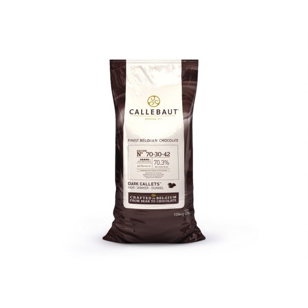Descoperiți deliciul oferit de Callebaut cu acești bănuiți de ciocolată neagră, creați special pentru iubitorii de ciocolată adevărată. Cu un conținut impresionant de 54,5% cacao, această ciocolată vă oferă un gust intens și plăcut de ciocolată amară.Ingrediente: Masa de cacao 71%, zahar 26%, pudra de cacao cu grasimi reduse 2%, emulsificator: lecitina de Soia (E322).
