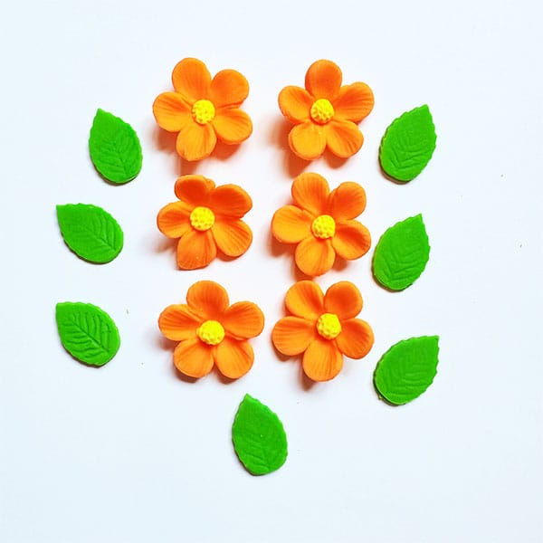 Setul contine 6 decoratiuni din pasta de zahar (conform imaginii) cu frunze din pasta de zahar..