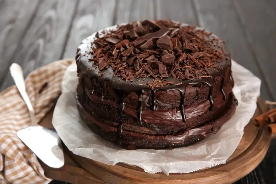 Tort de ciocolată delicios, cu cremă bogată de ciocolată și blat umed.