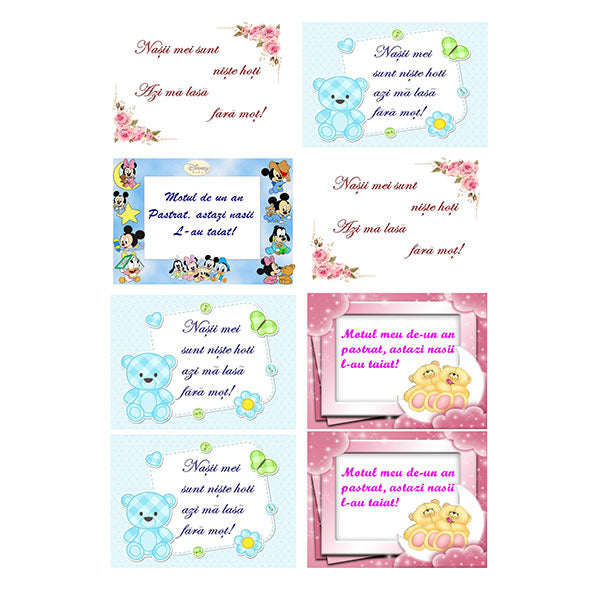Imagini imprimate pe vafe din napolitana (amidon de cartofi), ideale pentru decorarea torturilor imbracate in pasta de zahar/martipan. Vafa se lipeste pe tort si se acopera cu gel neutru, pentru a ii oferi elasticitate si tot o data creste calitatea pozei imprimate.