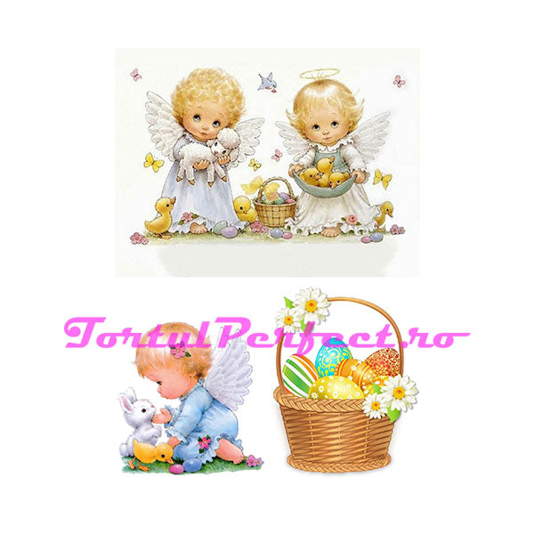 Imagini imprimate pe vafe din napolitana (amidon de cartofi), ideale pentru decorarea torturilor imbracate in pasta de zahar/martipan. Vafa se lipeste pe tort si se acopera cu gel neutru, pentru a ii oferi elasticitate si tot o data creste calitatea pozei imprimate.