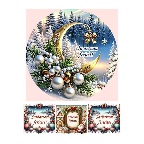 Imagini imprimate pe vafe din napolitana (amidon de cartofi), ideale pentru decorarea torturilor imbracate in pasta de zahar/martipan. Vafa se lipeste pe tort si se acopera cu gel neutru, pentru a ii oferi elasticitate si tot o data creste calitatea pozei imprimate.