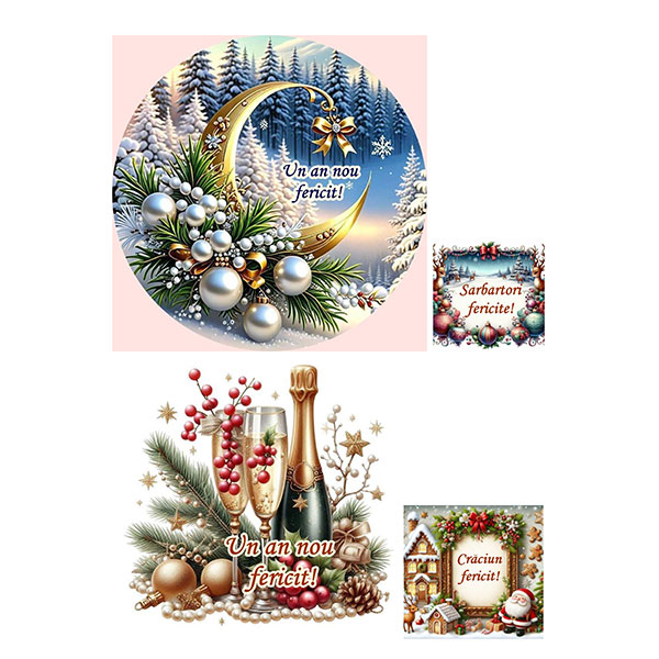Imagini imprimate pe vafe din napolitana (amidon de cartofi), ideale pentru decorarea torturilor imbracate in pasta de zahar/martipan. Vafa se lipeste pe tort si se acopera cu gel neutru, pentru a ii oferi elasticitate si tot o data creste calitatea pozei imprimate.