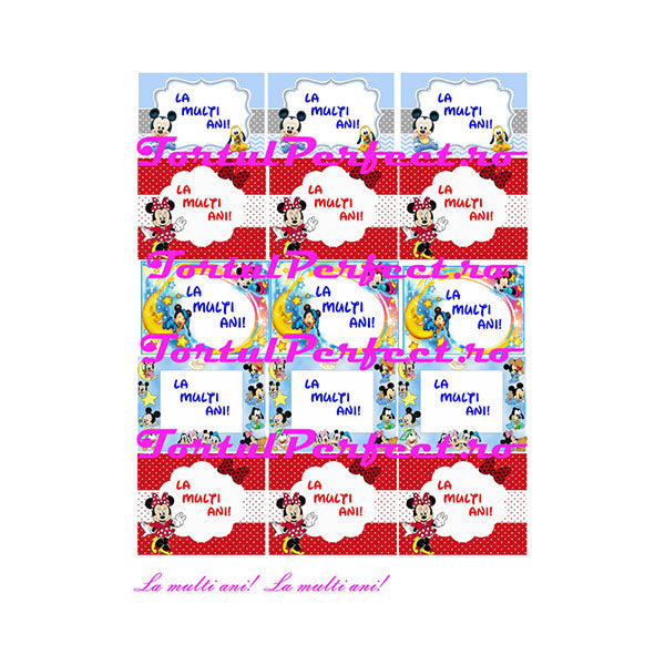 Imagini imprimate pe vafe din napolitana (amidon de cartofi), ideale pentru decorarea torturilor imbracate in pasta de zahar/martipan. Vafa se lipeste pe tort si se acopera cu gel neutru, pentru a ii oferi elasticitate si tot o data creste calitatea pozei imprimate.