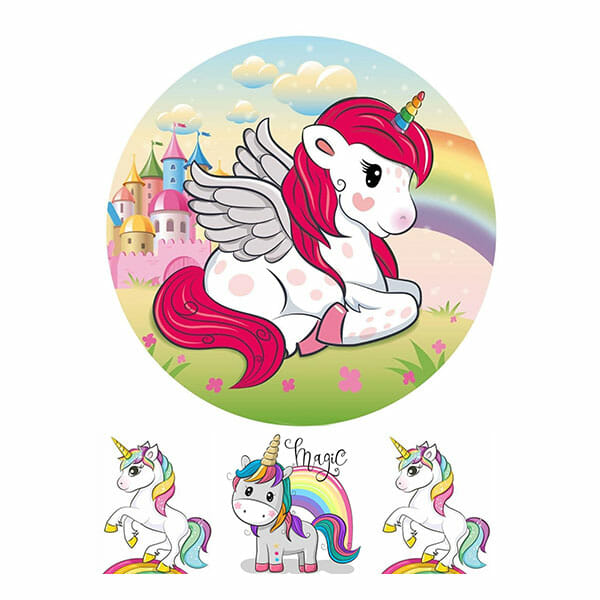 Imagini imprimate pe vafe din napolitana (amidon de cartofi), ideale pentru decorarea torturilor imbracate in pasta de zahar/martipan. Vafa se lipeste pe tort si se acopera cu gel neutru, pentru a ii oferi elasticitate si tot o data creste calitatea pozei imprimate.