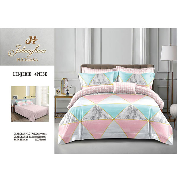 Lenjerie de pat din bumbac satinat superior - Turcoaz si roz