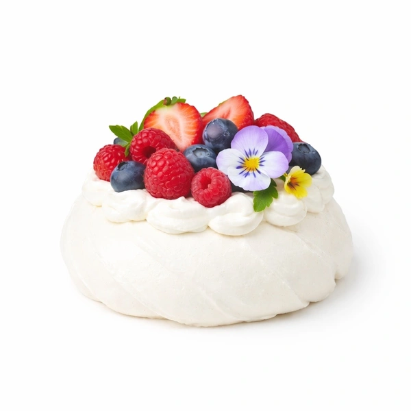 Pavlova modernă este un desert rafinat, cu un aspect spectaculos și o textură unică. La exterior are o bezea crocantă și ușoară, iar la interior rămâne delicat aerată, completată de un strat generos de frișcă fină, fructe proaspete și flori comestibile.