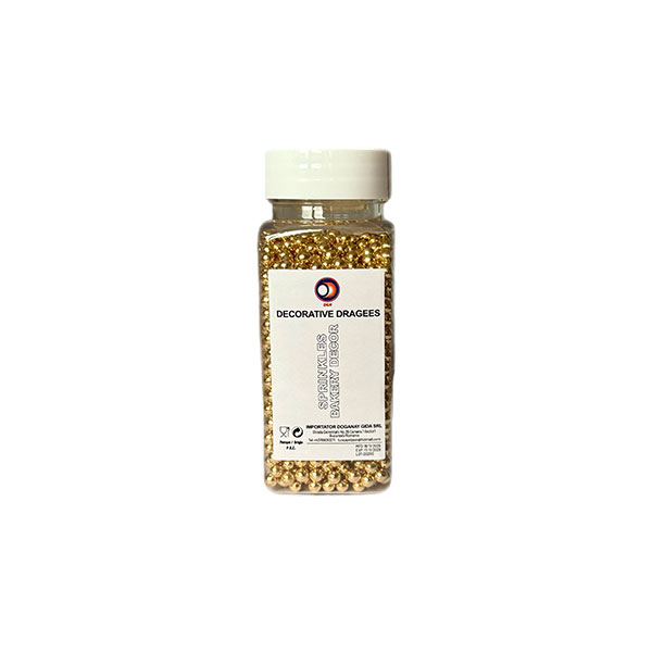 Bomboanele pentru decor aurii sunt ideale pentru a adăuga o notă de eleganță și rafinament deserturilor tale. Cu o dimensiune de 1 mm, aceste perle de zahăr sunt perfecte pentru ornarea torturilor, prăjiturilor și altor delicii dulci.
