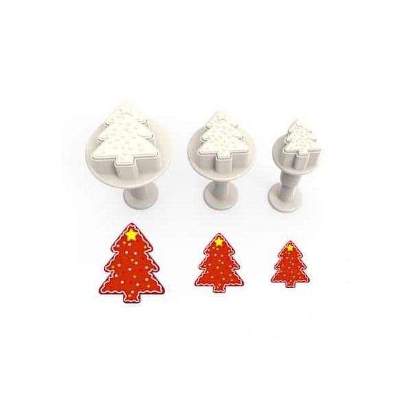 Set cu 3 decupatoare cu tija si ejector in forma de Brad de Craciun, Pastime