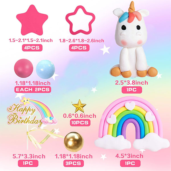 Set 24 Toppere 3D pentru Tort – Unicorn, Curcubeu, Bile și Stele